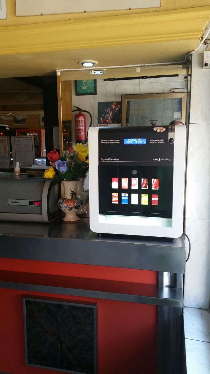 .Desktop es la máquina de tabaco mas pequeña del mercado con monedero con cambio. Dimensiones 510 mm x 425 mm x 310 mm Peso 30 Kg,10 Canales, 10 Pulsadores,12 paquetes por canal, 120 paquetes, 6 tubos de cambio en el monedero Monedero de cambio Pulsadores y salida de producto iluminados por leds Acceso a etiquetas y programación independiente con cerradura Display lcd blanco con 2 líneas de 16 caracteres Teclado numérico de programación Mando a distancia. Posibilidad de financiación por renting desde 35€ al mes.