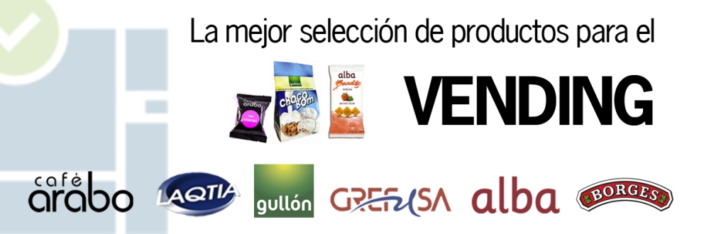 Desde nuestras instalaciones suministramos todo el consumible necesario para las máquinas vending de café y snack. Productos Gullón, Laqtia, Grefusa, Alba, Arabo, Borges, Mondelez,…etc.