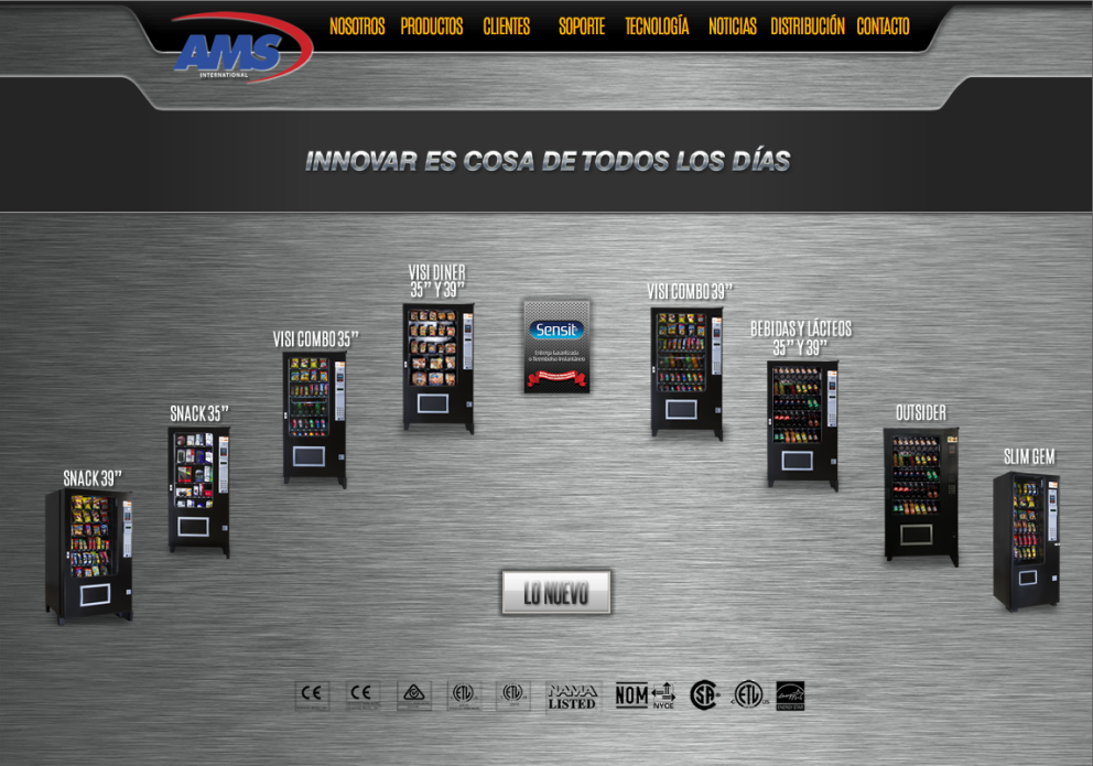 AMS fue fundada en la primavera del año 1997, por iniciativa del Sr. Roy Steeley, quien reunió a un grupo de connotados especialistas para diseñar la mejor máquina expendedora del mercado. Las expendedoras AMS de vidrio frontal, se caracterizan por su sistema “SENSIT”, patente de la empresa que permite una venta garantizada al cliente o la devolución de su dinero. AMS tiene una gran experiencia en la fabricación de máquinas expendedoras confiables y duraderas y se ha caracterizado por el gran número de innovaciones implementadas, lo que hace que el operador vending obtenga el mejor rendimiento de su inversión. La primer fábrica fue establecida en los Estados Unidos de Norteamérica, de esta planta se surte al mercado mundial. Debido a la aceptación del producto en Latinoamérica, se estableció una segunda planta en la ciudad de El Salto Jalisco, México para abastecer al mercado Mexicano, el Caribe, Centro y Sudamérica. Nuestra planta está situada en El Salto, Jalisco abarca una superficie de 12,000 m2 en la cual se alojan las oficinas, almacenes y áreas productivas. Una empresa nacional de renombre mundial. Una empresa con experiencia de un gran respaldo en la industria