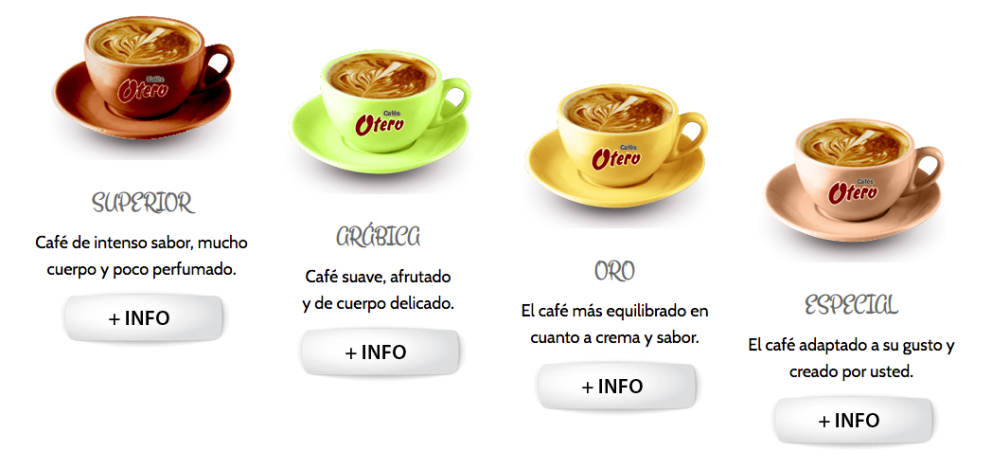 Cafés Otero S.A. es en la actualidad y a pesar de las dificultades, una empresa moderna y consolidada en el mercado, como lo demuestra el hecho de atender a más de 1500 clientes. Nuestra premisa fundamental es conseguir la máxima satisfacción de nuestros clientes, ofertando productos de altísima calidad, acompañada de un buen servicio.