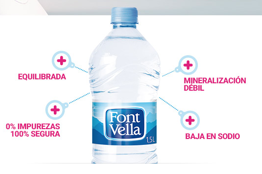 El PODER DEL EQUILIBRIO De lo más profundo de la tierra emerge un agua con propiedades únicas: Font Vella. 100% equilibrada, sin impurezas y totalmente segura. Un agua que emerge del manantial y va directa a tu botella. Para ti, para tu bienestar. NATURALMENTE ÚNICA Aunque pueda parecerlo, no todas las aguas son iguales. De hecho, solo el agua mineral natural, como Font Vella, proviene de un manantial, tiene una composición conocida, exclusiva y constante, un sabor que nunca varía y es completamente intacta, sin tratamientos. Un producto único creado por la naturaleza.