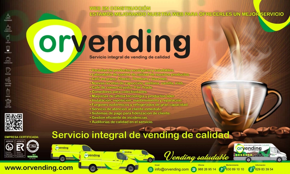 ORVENDING, S.L. ofrece un servicio integral de vending personalizado, dirigido a cualquier centro, público o privado, adecuándolo a la medida de cada consumidor. Ponemos a su disposición las máquinas más prestigiosas, modernas y avanzadas del mercado, junto con productos líderes en el sector de la alimentación. Nos encargamos de la compra, instalación, mantenimiento y reparación de todas y cada una de las máquinas instaladas.