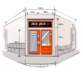 Pica & Pica 24h, es un concepto de tienda automática 24 horas basado en máquinas expendedoras indicadas para su instalación en la calle, ideal para emprendedores que precisen baja inversión, sin necesidad de personal, ni dedicación constante. Único requisito : disponer de una fachada, escaparate o local.
