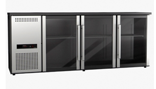 BACK BAR COOLERS Los BackBar Coolers están diseñados para ir acorde con la decoración de su local Elegante y práctica, nuestra gama ofrece varias opciones y acabados para poder adaptarse a cada cliente REFRIGERANTE NATURAL El BackBar Cooler es el nuevo producto efficold desarrollado para poder emplear refrigerantes ecológicos El gas de base hidrocarburo R-290 tiene un impacto menor sobre el medio ambiente y el del CO2 es prácticamente nulo, siendo el único refrigerante totalmente natural usado en el sector del frío comercialACABADOS El exterior puede variar entre ser de skinplate negro u otros colores, o de inoxidable con acabado satinado Las puertas pueden ser sólidas o de cristal, con la posibilidad de personalización con la imagen de marca iluminada ESPACIO ÚTIL Grupo compacto de frío de alta eficiencia externo a la cámara para una mayor capacidad de almacenamiento Es extraíble con apertura simple de la puerta de rejilla lo que mejora tanto el mantenimiento como la limpieza Compresor hermético con condensador ventilado y circulación del aire en «u» permitiendo un reparto del frío uniforme en todo el habitáculo OPCIONES Refrigerante R-290 / CO2 Refrigeración por tiro forzado con circulación de aire optimizada Aislamiento de poliuretano inyectado de 40kg/m3 de densidad Evaporador y condensador en tubos de cobre y aletas de aluminio Control de temperatura mediante termostato digital Material de costados, frontis y encimera según modelo Encimera reforzada Respaldo en acero galvanizado Interior en acero inoxidable austenítico mate Puertas de cristal con bastidor de aluminio anodizado acabado inoxidable Dotación de 2 estantes de acero inoxidable por puerta Parrillas adicionales en acero inoxidable Puertas sólidas Personalización