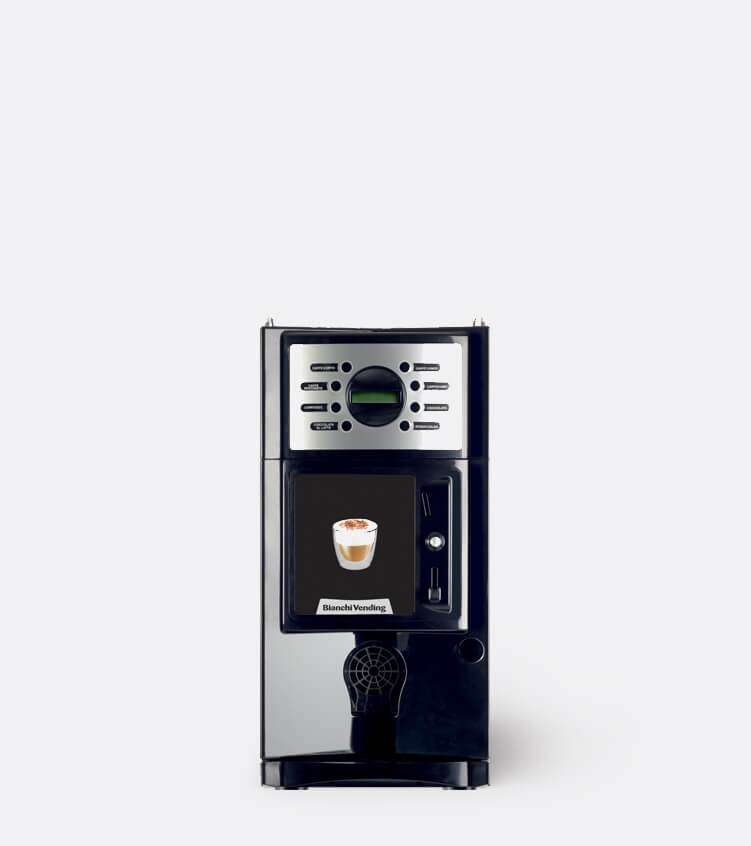 anel de botones con 8 botones retroiluminados configurables tanto como selecciones como preselecciones. El panel frontal ofrece excelentes oportunidades de señalización. Pantalla alfanumérica de 32 caracteres. Compartimento dispensador con posibilidad de iluminación con una altura de 170 mm que le permite utilizar los vasos (con soporte de vasos basculantes), vaso grande, taza o jarra.