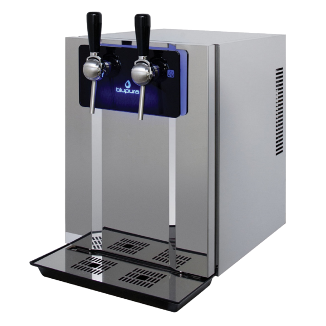 Functional, rentable, sencillo…BLUBAR «beer» tap es el refrigerador de agua ideal para tu bar y tu restaurante! Con grifos mecánicos manuales 2 opciones de suministro: agua fría con y sin gas, o agua fría y a temperatura ambiente sin gas Realizada completamente en acero inoxidable, con panel frontal en plexiglás retroiluminado Espacio interno para alojar el cartucho de filtrado y UV en línea Gasificador profesional en acero inoxidable Serpentín de enfriamiento doble, uno para el agua fría y el otro para el agua con gas Banco de hielo de alto aislamiento para una elevada producción de agua fría, con y sin gas.
