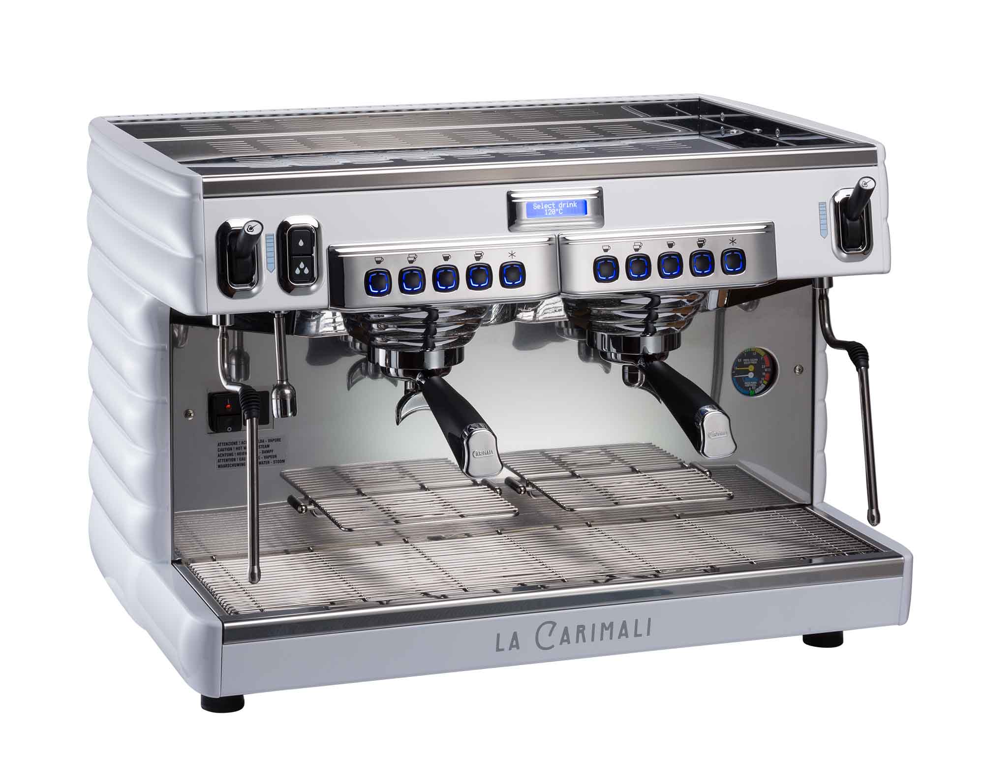 Máquina diseño italiano de altas prestaciones. Caldera aislada termicamente, control de temperatura con sonda, portas con tres anclajes para evitar el desgaste, diseño exclusivo, iluminación led.