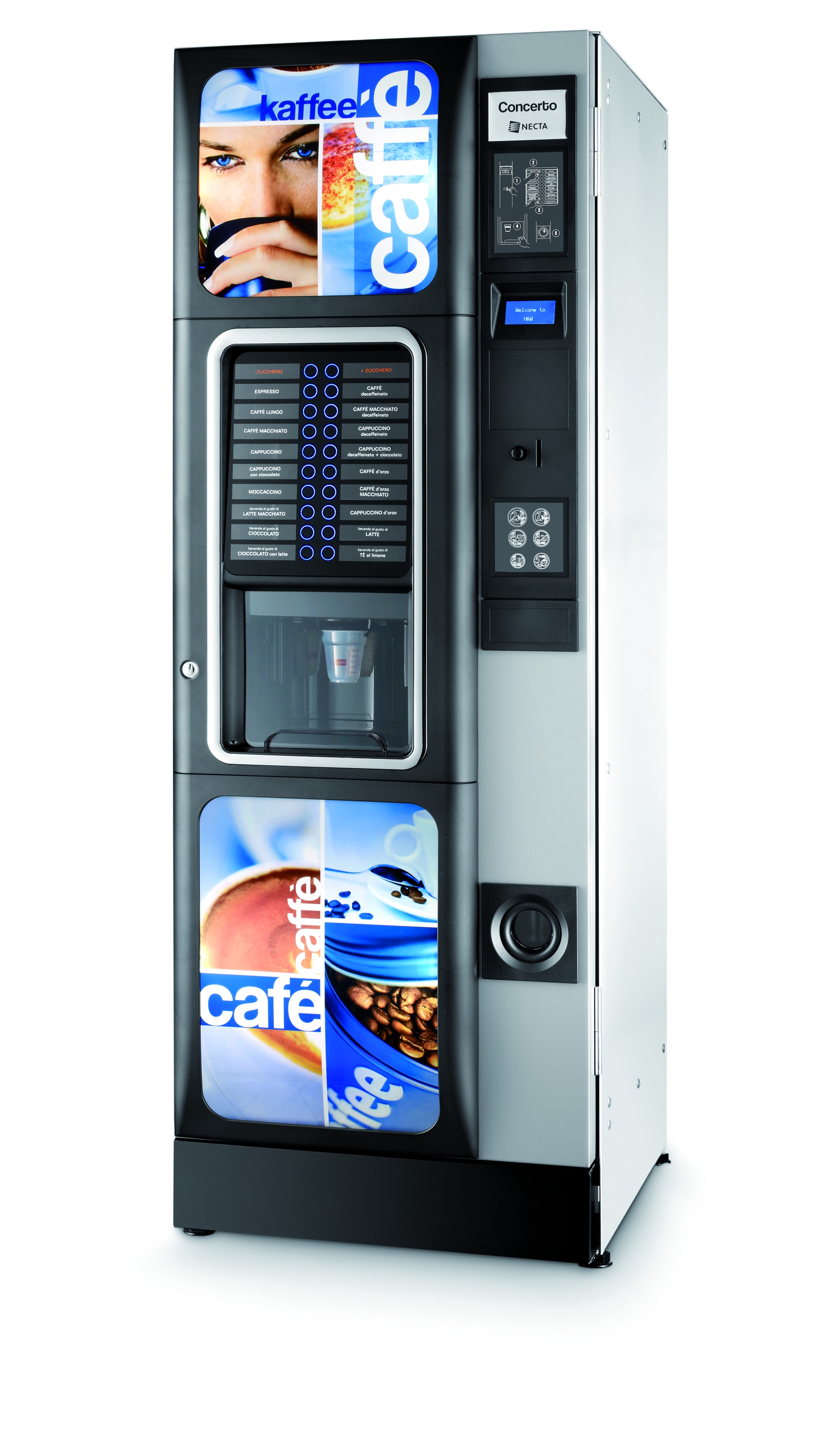 Con sus dimensiones optimizando el espacio de pequeños y medianos emplazamientos, Concerto ofrece una solución ideal de bebidas. La reducción de su tamaño no se traduce en una selección limitada de productos: Concerto ofrece una amplia selección de opciones de bebidas frías y calientes de gran calidad que satisfacen todos los gustos. Se unen una innovadora tecnología Z4000 de café espresso y doble espresso, junto con una robusta artesanía Italiana que hacen de Concerto un producto de referencia en la industria del vending para los próximos años