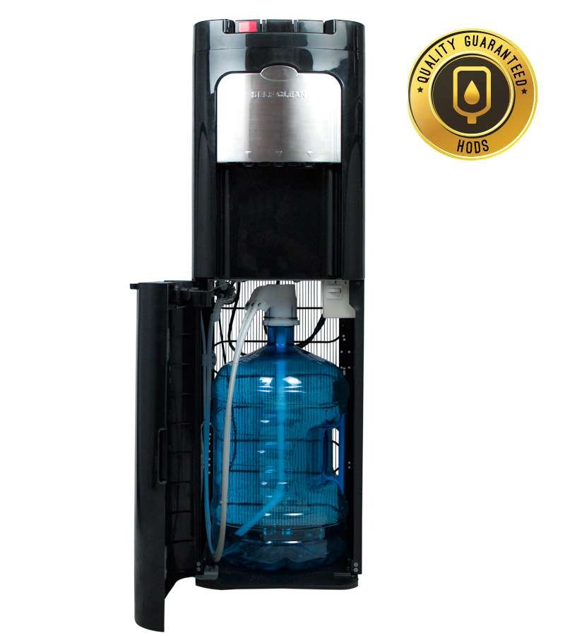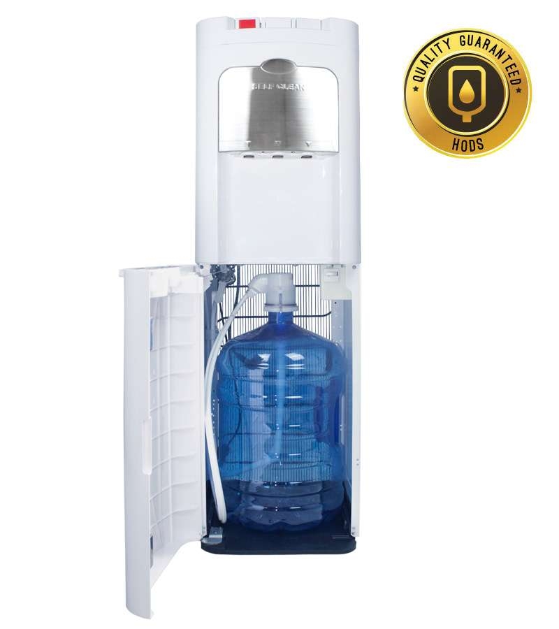 Evossé O3 Down. La línea de dispensadores de agua fría, caliente y natural Evossé O3 cuenta con un diseño elegante y funcional en líneas rectas y sencillas. Fabricados en los mejores materiales, combinan dos acabados, ABS brillante en la parte frontal y chapa de acero laminado en frío mate en los laterales. La Evossé O3 Down cuenta con el sistema Auto Self Clean higienizante, un sistema ozonizador incorporado. Cada 4,5 horas genera una descarga automática, se auto higieniza y se desinfecta. Este sistema inyecta una pequeña dosis de ozono, inferior a 50 ppb, que entra en el circuito del agua y evita la formación de bacterias. Alargando así la vida del dispensador. Tiene un regulador de temperatura del agua para ajustarla al gusto. Además, cuenta con interruptores de frío y caliente en la parte trasera para ahorrar energía. El modelo Evossé O3 Down carga por abajo con una bomba. Por lo tanto, el botellón se introduce en la parte inferior del dispensador, evitando así el esfuerzo de levantar el botellón. Admite nuestros botellones PET en todos sus formatos, desde 12 litros hasta 20 litros provistos con el tapón estándar 5 galones. Incorpora un recogegotas de acero inoxidable, que capta el agua cuando se desborda el vaso que se está llenando. Disponibles en color Blanco y Negro
