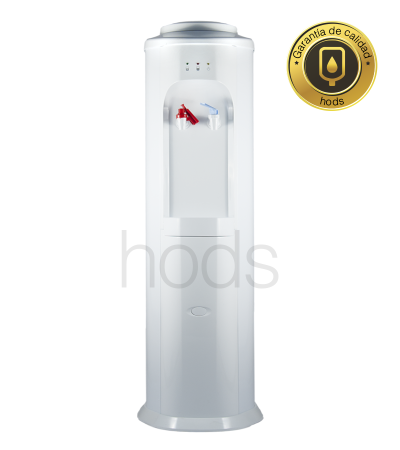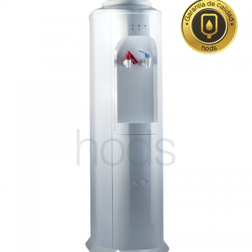 Dispensador de Agua Elegance Blanca. De color blanco muy estilizado, más fino y con un diseño minimalista perfecto para cualquier ambiente, ideal para los que dan mucha importancia a la imagen. Buscamos la más alta calidad a un precio razonable. Es por ello que este dispensador ha sido mejorado todavía más para aumentar sus prestaciones y la satisfacción del cliente. Como resultado, un compresor más eficiente y unos termostatos mejorados que aumentan la capacidad de enfriamiento, reducen el consumo de energía y lo vuelven mucho más silencioso. Además, Elegance Blanca incorpora un Sistema Antiderrame que funciona con una boya interna que evita el desbordamiento de agua cuando la capacidad del tanque de agua del dispensador suba del nivel adecuado. Gracias a ello, evita cualquier derrame excesivo de agua del botellón a la máquina. Es más, todos los tubos en contacto con el agua son de ACERO INOXIDABLE lo que aporta salubridad por su higiene y por la no migración de sabor a plástico en el agua como en el resto de máquinas del mercado. El Dispensador de Agua Elegance Blanca también está disponible en filtración y en color Negro. Enfría y calienta el agua, e incorpora un recogegotas que recoge el agua que se pueda desbordar del vaso que se esté llenando. Incluye un regulador de temperatura para el agua permitiendo ajustar la temperatura a demanda y un grifo de seguridad para el agua caliente que previene de quemaduras accidentales, además permite desactivar el agua caliente lo que ofrece la posibilidad de tener un grifo de agua natural (agua a temperatura ambiente), y como resultado final, un dispensador de agua fría y agua natural. Este dispensador es compatible con todos nuestros botellones PET en sus diferentes formatos y se le puede añadir accesorios como nuestro nuevo Portavasos transparente, además de ser perfecto para ser acompañado por nuestra Estantería metálica de color blanco para 4 botellones PET.