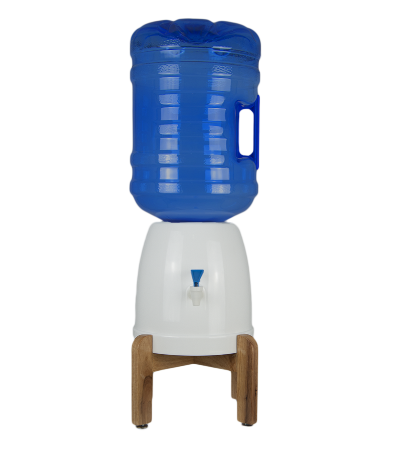 El Dispensador Simple de Agua Natural, ofrece simplicidad y economía. Es un tipo de dispensador de agua que utiliza la gravedad como sistema de dosificación y su diseño es técnica e higiénicamente muy completo. Admite la incorporación de soporte de madera disponible tanto para sobre mesa, como para suelo, facilitando su uso en cada circunstancia. El Dispensador Simple de Agua Natural está fabricado en una sola pieza de polipropileno (PP) lo que hace que sea muy robusto y resistente. Además, permite instalarlo fácilmente sin necesidad de utilizar herramientas. Su sistema de inserción de la botella es el mismo que el de nuestras fuentes con compresor. Es decir, incorpora un pincho que entra dentro del botellón PET, a través del tapón de 5 galones, y por el cual circula el agua por medio de su conducto de tubería hasta dosificarse a través del accionamiento del grifo. Esto está hecho así para evitar fugas. Dicho diseño consigue que el agua nunca esté en contacto con el exterior del envase quedando, por lo tanto, libre de entrada y transmisión de suciedad. Es compatible con el stand de madera de sobre mesa y también con el stand de madera para suelo. Estos stands permiten elevar el dispensador a gusto del cliente.