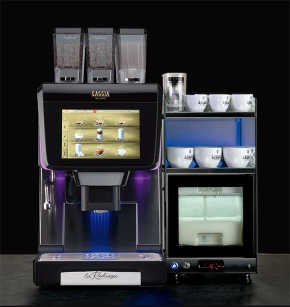 La Radiosa es la máquina superautómatica de la marca Gaggia Milano que supone la entrada definitiva de la compañía en el mercado de las máquinas automáticas. La Radiosa es una máquina que se ha lanzado fruto de un intenso trabajo de innovación. Su diseño cautivador, con iluminación RGD LEDS que rodea su perfil, una pantalla táctil de 10” con la opción de disponer de iconos personalizados, ajustes de colores en la iluminación y mucho más. Un modelo de compactas dimensiones que da una gran flexibilidad a los establecimientos de hostelería ya que pueden ofrecer servicio con 2 tipos de café, crear perfiles de café espresso totalmente personalizados ajustados al gusto de sus clientes y la opción de trabajar tanto en modo barista como en modo self-service. La aplicación de la última tecnología a La Radiosa ha dado lugar a una máquina con conectividad Wi-Fi y Bluetooth integradas para poder tener un control absoluto de la máquina. De este modo se consigue mejorar el rendimiento y controlar los costes uniendo innovación y eficiencia. Este modelo aprovecha la experiencia de la marca Gaggia, con más de 80 años de historia y que fue la que dio origen el café espresso, para lanzar una máquina superautomática que se adapta a las nuevas necesidades y requerimientos del mercado manteniendo la esencia de la elaboración del café espresso de alta calidad en entornos profesionales. La creciente demanda de las principales combinaciones con leche fresca por parte de los clientes, como el cappuccino, latte macchiato, etc...., se ve satisfecha en La Radiosa mediante la tecnología EVOMILK que produce una perfecta crema de leche a partir de leche fresca. A esto hay que añadir la ventaja de disponer de un ciclo de limpieza automático plug-and-play. Más información en: http://www.qualityespresso.net/es/gaggia-milano/gaggia-milano-la-radiosa