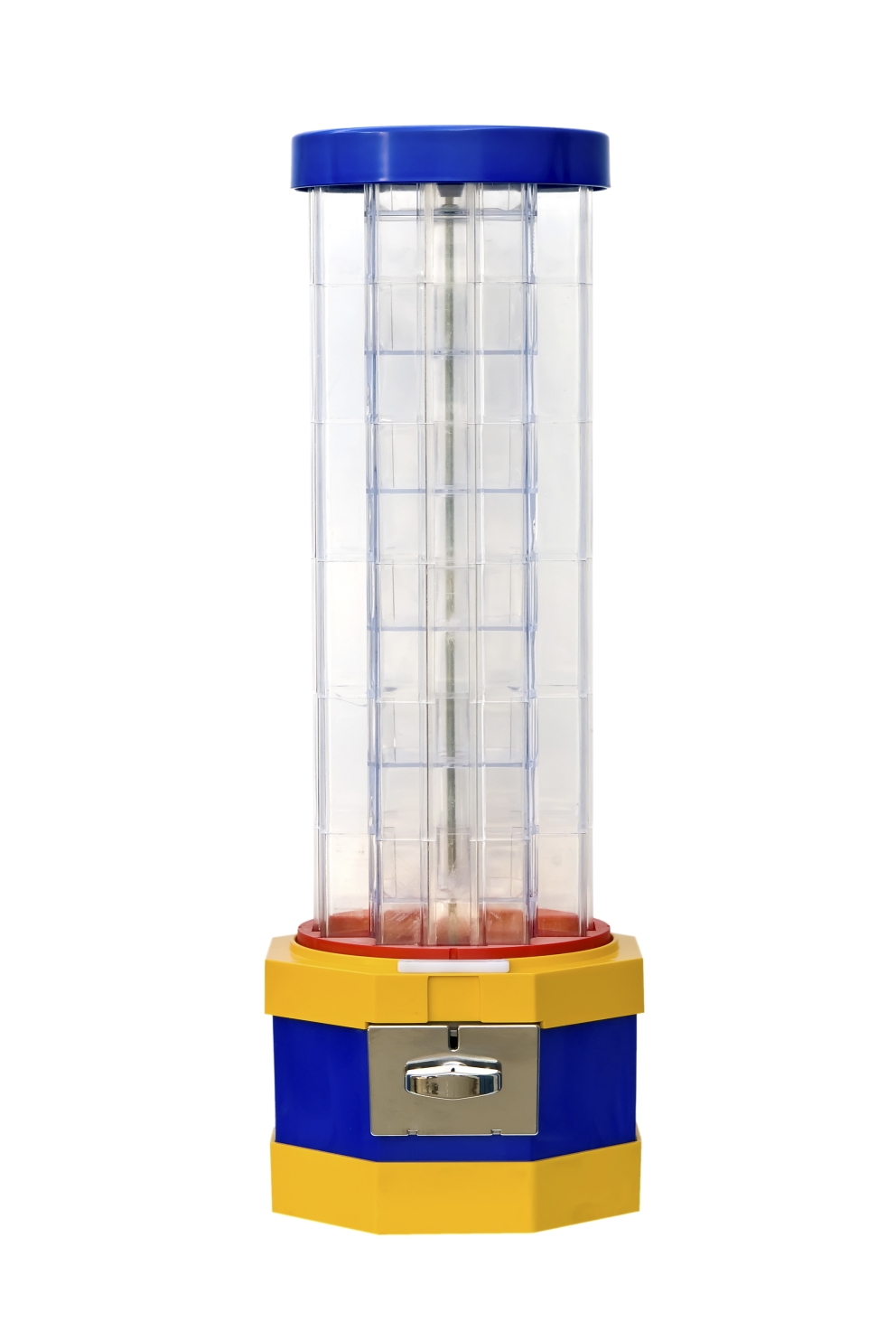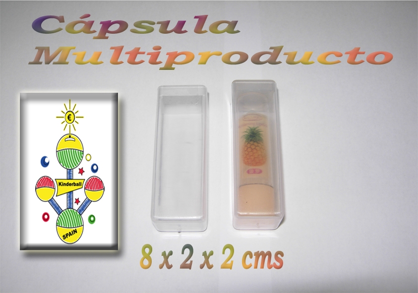 Expendedora Multiproducto. Nuestra expendedora más polivalente y versátil, ya que permite vender productos muy variados: mecheros, papel de fumar, chicles, llaveros, preservativos, limas de uña, pintalabios, pintauñas, usb, mini bolígrafos/ lápices...todo aquello que tenga cabida en una cajita de 8 x 2 x2 cms, de fabricación propia; los productos deben ir dentro de dicha cajita, no pueden ir sueltos. La máquina consta de 4 canales y por tanto permite poner 4 productos distintos. Por ejemplo, en un canal mecheros, en el otro llaveros, en el otro bolígrafos y en el otro usb. Los canales son giratorios para que, antes de poner la moneda, el cliente pueda seleccionar qué producto quiere que expenda la máquina. Una vez elija el canal, se queda anclado para que no haya interferencias. El cliente pone la moneda, de 1 euro habitualmente, acciona la maneta del monedero y la máquina expende la cápsula. Normalmente funciona con moneda de 1 euro, pero si el cliente le quiere dar otro valor, se puede poner también a 1 + 1, 0,50 o a 0,20, como el cliente prefiera. Capacidad: 100 cápsulas multiproducto. Fabricada en plástico ABS y PS. Dimensiones y peso aproximado: 79 alto x 22 ancho x 22 fondo, 4.7 kgs.