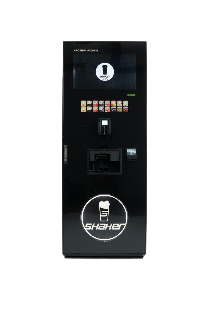 8 contenedores de producto en polvo (2 kg) 16 botones táctiles Mezcla proteína, BCAA, L-Carnitina, Gainer Pantalla de 24 pulgadas para anuncios 100 vasos, 350 ml (entrega automatizada) Pago con tarjeta y/o con monedas OPCIONES ADICIONALES Refrigerador Módulo para concentrados Conexión al sistema de suministro de agua