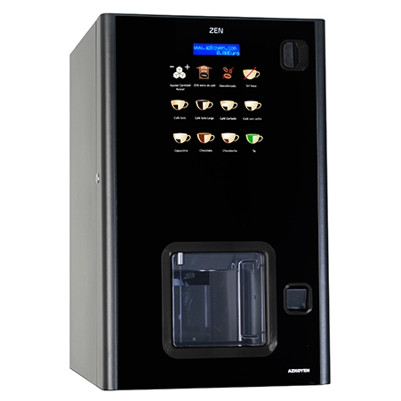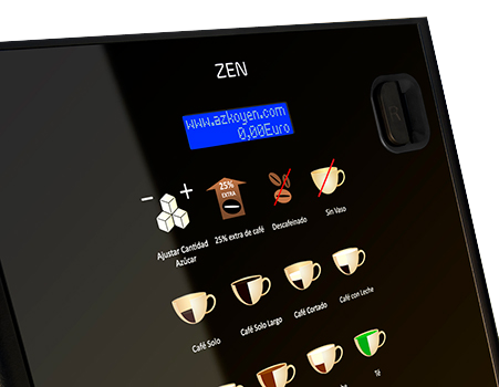 La gama Zen ha sido desarrollada para hacerte el trabajo más fácil, desde su instalación y puesta en marcha, hasta su mantenimiento, pasando por la configuración, la recarga de producto o la gestión de cobros. La instalación y configuración es extremadamente sencilla gracias a los perfiles precargados y totalmente configurable gracias a los 12 botones programables y al software de configuración para PC. La limpieza y recarga de producto es muy rápida y sencilla gracias a la tapa abatible, las superficies planas, la bandeja recogedora para residuos y el frontal de una sola pieza. Diseñada para dar una autonomía real equivalente al número de vasos, mediante la optimización de la capacidad de café, leche y chocolate. Sin esta ptimización otras máquinas se quedan sin producto antes que sin vasos.