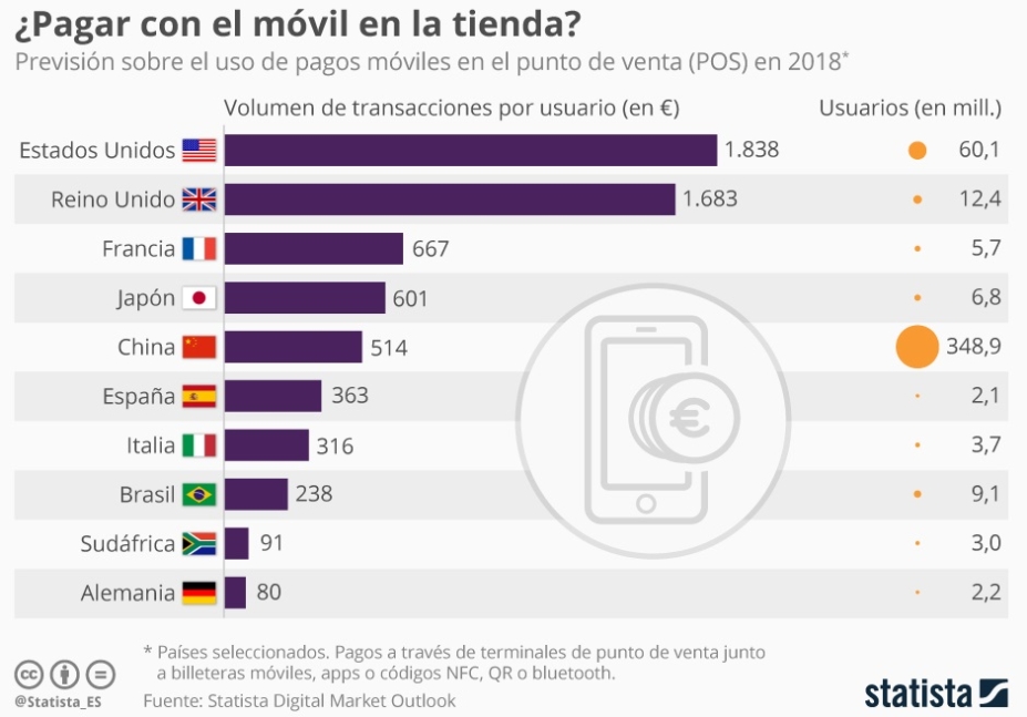 HOSTELVENDING.com 14/08/2018.- Los medios de pago móvil están en auge, ¿pero conocemos exactamente cuánto dinero manejan de media los españoles a través de estos sistemas de pago? Según las últimas previsiones de Statista Digital Market Outlook, las cifras para este 2018 se situarían en 363 euros y 2,1 millones de usuarios.