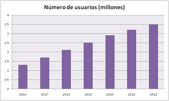 Y según crece el importe manejado en el conjunto de transacciones, también crece el número de usuarios. De los 1.27 millones de 2016, pasamos a más de 2 millones este año y esperamos todavía 3.53 millones en el año 2022. Atendiendo a los datos, podríamos ver, por tanto, un crecimiento constante en el número de clientes potenciales para el vending, sin que dicho crecimiento sea tan exponencial como en el volumen total facturado a través de este mercado.