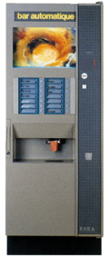 En 1970 se expuso por primera vez una máquina automática de café expreso en el M.O.M.A., el Museo de Arte Moderno de Nueva York; rheavendors era su creador. El diseño exterior simple y minimalista, firmado por Bruno Morassutti, contrastaba notablemente con la avanzadísima tecnología interior, que integraba un molinillo para granos de café (hasta entonces, las máquinas trabajaban con café molido). Pocos años más tarde llegó la E100, la primera expendedora con mueble íntegramente fabricado en plástico, obra de Angelo Mangiarotti, ya entonces reconocido como uno de los arquitectos y diseñadores más ilustres de la escena mundial. La E100 fue una máquina revolucionaria: la primera en formular el concepto table-top, la primera que mostraba los granos de café desde el exterior, y la primera en presentar un innovador sistema centrífugo de erogación.