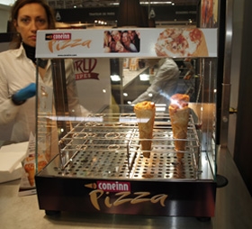 Una de estas ideas es la creada por la empresa catalana Coneinn, que ha elaborado unos conos de pizza de tamaño adaptado al consumo individual.