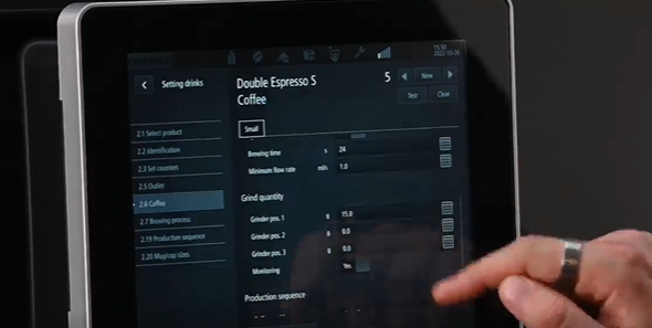 Wojciech Tysler procede así a programar una receta de autor en la superautomática para que cualquier cliente pueda recrearla cualquier día. Entre sus especificaciones, el barista explica cómo la máquina puede albergar hasta tres molinillos, una o dos tolvas de café en polvo o un módulo de café helado.