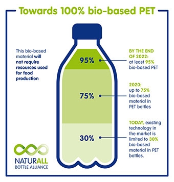 La alianza espera poder mostrar sus resultados en 2020 con un 100%. "Creemos que es posible reemplazar los materiales fósiles tradicionales con materiales de embalaje basados en la biología. Al asociarnos y reunir nuestros conocimientos y recursos complementarios, la alianza puede avanzar más rápido en el desarrollo de plástico PET renovable y reciclable al 100% a escala comercial", dijo Fredric Jouin, responsable de investigación y desarrollo de Danone, en un comunicado.
