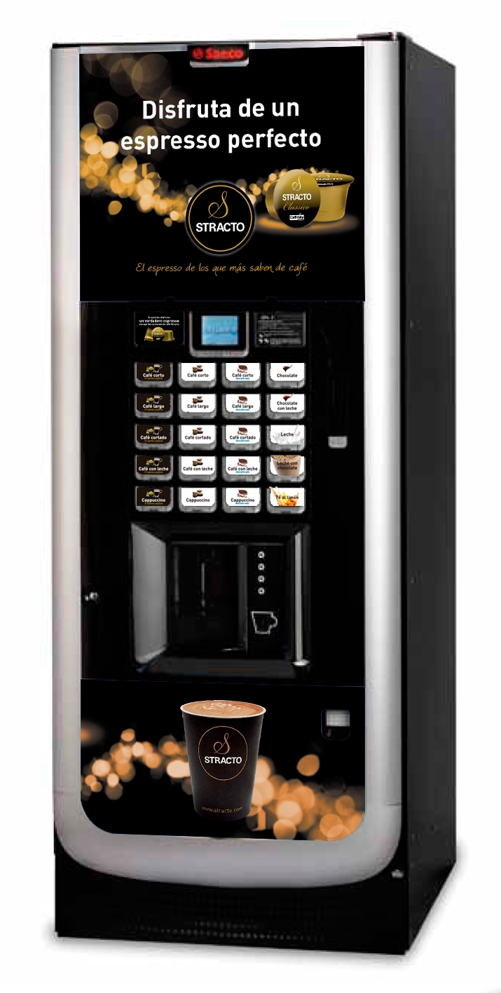 La gran apuesta para el vending café de Cafento y primicia en la feria es la máquina expendedora creada por Saeco. La nueva máquina de vending de Stracto permitirá ofrecer la calidad del mejor espresso de cápsula de la marca con el sistema de una máquina vending, de manera cómoda y sencilla, para oficinas con grandes consumos.