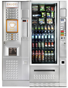 Rheavendors presenta, también, una nueva máquina de snacks y bebidas frías; compañera master/slave de la máquina de café anteriormente descrita (Caffé Europa). La empresa propone la posibilidad de vender los aparatos juntos.