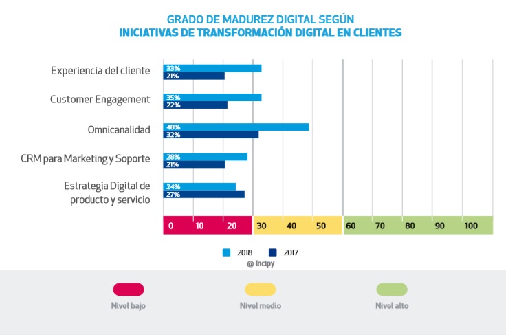 En el ámbito de experiencia y engagementde cliente sí que se materializa una mejora, siendo el nuevo centro de atención de las empresas. Así, El 48% afirma que ya están llevando a cabo iniciativas deomnicanalidad.En palabras de Belén Cuadrillero, Directora de Customer Experience de Íncipy “es muy interesante observar como crece el número de empresas que empiezan a pasar de orientación de producto a orientación a cliente aunque sea de forma paulatina. Y es necesario que lo hagan de forma estratégica, coordinada y de manera que impacte en el resultado de negocio. Tan solo un 3,5% de los entrevistados tiene una Estrategia Integral de Cliente”.