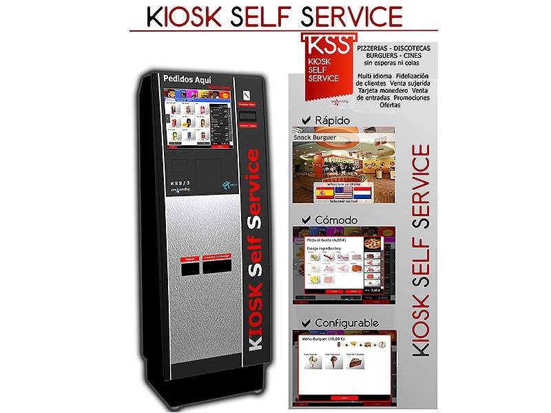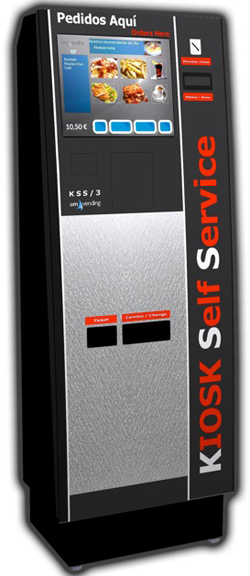 El kiosko no se equivoca y no se queda efectivo; es cómodo y sencillo a la hora de pedir y pagar. El kiosko muestra los productos de manera más atractiva, y va conduciendo a la compra de forma intuitiva. Una agradable experiencia de usuario que le invitará a repetir. El kiosko le permite pagar con efectivo (billetes y monedas) o con tarjeta de crédito. También resalta su carácter innovador al modernizar la imagen del negocio y ofrecer una forma diferente de venta que siempre será bien recibido por los clientes, cada vez más afianzados con las nuevas tecnologías. Este punto de venta desatendido permite al cliente realizar su compra y pago de manera autónoma, sin necesidad de ser atendido.