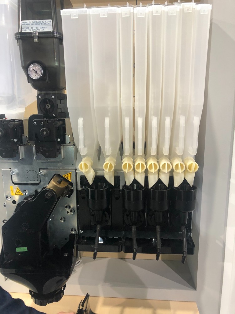 Como si de un puzzle se tratase, Forcada nos enseñaba las posibilidades de cambiar el servicio, oferta y configuración de la máquina tanto a nivel físico como a nivel digital: multiplicar contenedores de solubles y aumentar sus posibilidades, readaptar el interior de la máquina, configurar la oferta de productos y sus precios de forma dinámica… así es la nueva Bianchi.