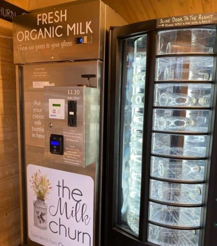 En Inglaterra, donde la leche fresca es casi una norma, tras la falta de producto en los supermercados, dos granjas familiares decidieron servir a sus comunidades vendiendo leche fresca. Ejemplo de ello es Will Lambourne, que desde su granja Townsend en Marsh Gibbon en Oxfordshire, se le ocurrió la idea de vender directamente a los ciudadanos a través del vending.
