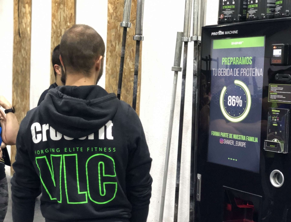 HOSTELVENDING.COM 06/03/2020.- Desde febrero, la empresa Shaker está colaborando con el box Crossfit VLC en su proyecto piloto implantado en España, la instalación de una máquina expendedora exclusiva de batidos protéicos. El rasgo distintivo de la máquina es la técnica de mezcla de proteína: hace batidos frescos para el consumidor en treinta segundos.