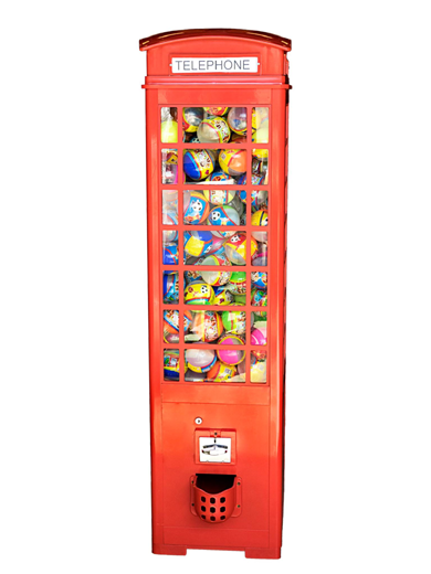 De entre los distintos modelos, destaca uno especialmente elegante que nace a imitación de una cabina telefónica británica con sus característicos tonos escarlata de tal forma que es imposible no centrar ahí la atención. Concretamente, este modelo decorativo está pensado para bolas de gran tamaño, con un contenido premium para los operadores profesionales que quieren mejorar la gama de su parque de máquinas.
