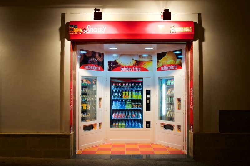 La tienda inaugurada en Jerez cuenta con seis equipos expendedores de última generación, cuatro máquinas multiproducto de cristal para la venta de bollería, snacks, bebidas frías, preservativos, productos eróticos, productos de gropshop, etc., una expendedora expendedora de comida caliente de cristal, modelo Chef New, que expende hamburguesas calientes, perritos, kebabs… y una expendedora robótica de cristal de bebidas frías.