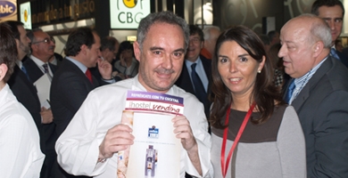 Simultáneamente, y en otro punto de la feria, Ferrán Adriá posaba con la revista HOSTEL VENDING y la Lavazza Blue (expendedora de café que unifica los conceptos máquina y monodosis) para uno de nuestros reporteros.