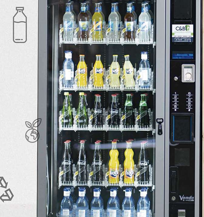 De esta forma, las nuevas máquinas con envases de cristal irán sustituyendo paulatinamente a las tradicionales, que aun ofrecen productos en recipientes de plástico no reutilizado. Así, las primeras expendedoras se han ubicado en la sede de Rivamadrid, en la que también se ha instalado una máquina de café.