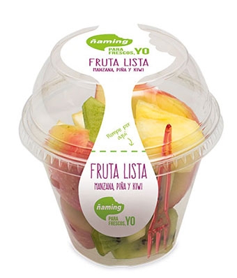 Se atreven con dos formatos, una tarrina de 120 gramos, que se comercializa con piña melocotón, pera y una macedonia, y un bot de 825 gramos con tapón de rosca que se mantienen frescos durante 7 días una vez abiertos y almacenados en el refrigerador.