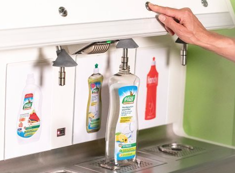 Al igual que el reverse-vending, esta dispensadora otorga a los envases una segunda oportunidad. Como se aprecia en el vídeo, la firma ofrece a sus clientes la posibilidad de rellenar los envases de los productos de limpieza; todo ello con el fin de reducir los residuos y la huella ecológica.