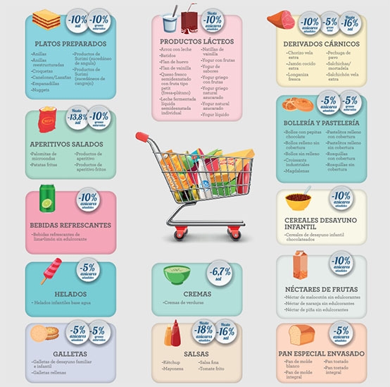 -Reducciones en el porcentaje de azúcar que irán desde el 5,3% hasta el 21%, dependiendo del tipo de refresco.