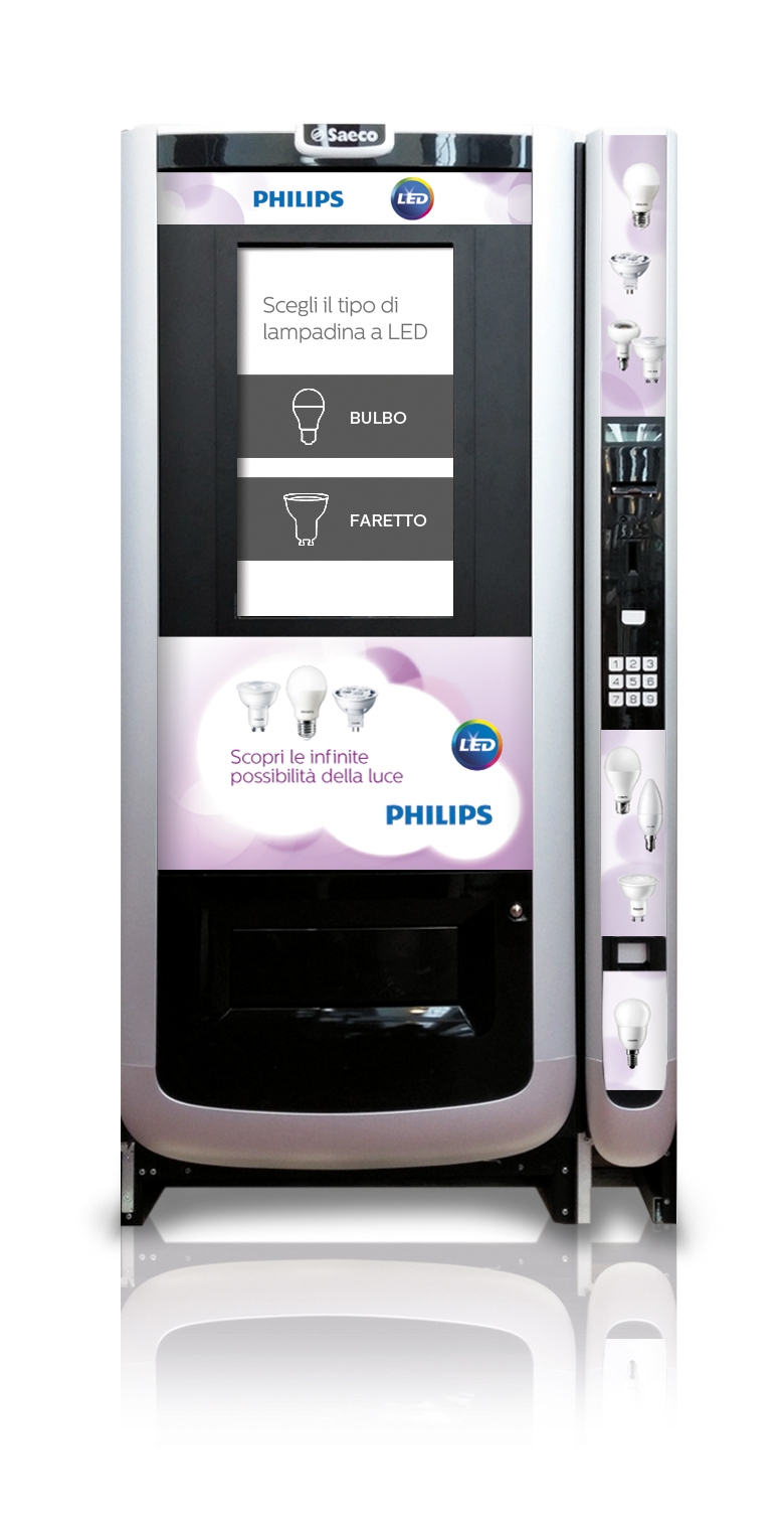 HOSTELVENDING.com 29/07/2014.- Philips y Saeco Vending han desarrollado la primera máquina expendedora de bombillas. Es única en su género y está equipada con una pantalla táctil que ofrece una guía de compras para la elección de estos focos con tecnología LED.