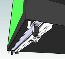 Además, para aplicar este sistema, sólo es necesario que la máquina se eleve unos 4 centímetros por encima del suelo, con lo que los fabricantes ganarían a la hora de reducir el tamaño de sus modelos. Así pues, la distribución sería la siguiente: en la parte de abajo del mueble van 4 guías, 2 en cada lateral para los dispositivos de los calces y otras 2 para los dispositivos de ruedaas.