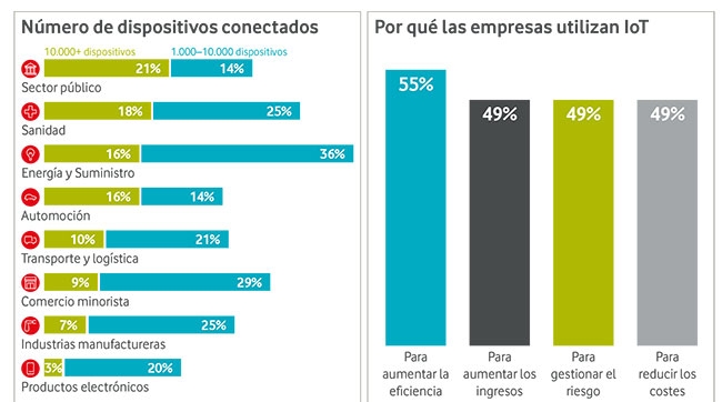 Según la compañía las empresas con más dispositivos conectados constatan las mayores ganancias. En su encuesta afirman que la proporción de empresas que han adoptado el IoT ese ha duplicado en los últimos cinco años, siendo el comercio minorista uno de los sectores donde más ha aumentado su uso pasando del 20% al 26%.