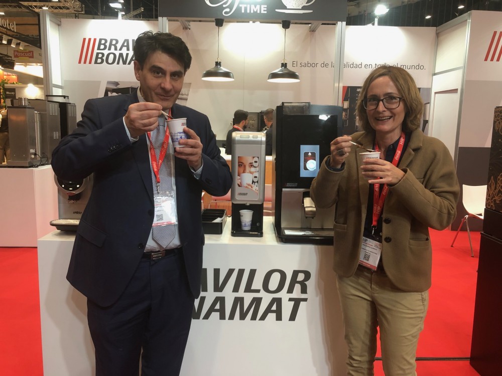 HOSTELVENDING.COM 26/02/2020.- Si hay una característica que está marcando los servicios de OCS en los últimos tiempos esta es la tendencia hacia los productos premium, de mayor calidad y más especializados. Precisamente en esta línea se ha movido la veterana empresa Simat, que ha presentado en esta edición de HIP en Madrid su acuerdo de colaboración con fabricantes como Bravilor Bonamat o Evoca para presentar su gama de productos junto con las máquinas de la compañía.
