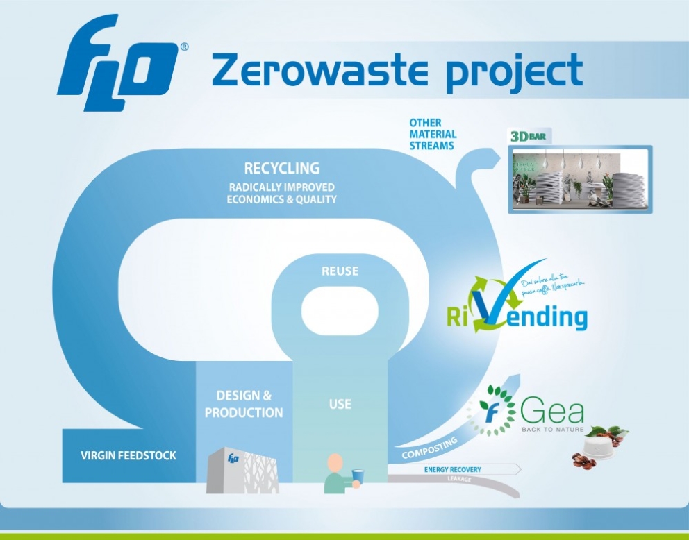 Entre los proyectos apoyados por Flo Spa, destacan RiVending, que es, en esencia, el reciclaje de vasos de plástico para máquinas expendedoras y, por otro lado, GEA, la nueva generación de cápsulas de café biodegradables y compostables completamente hechas de PLA Ingeo.