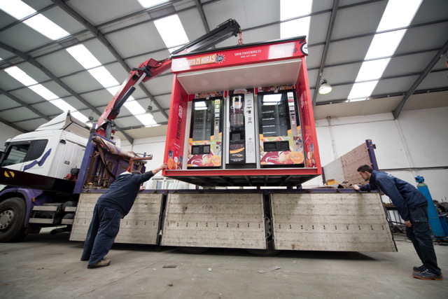 Desde Eravending han creado una tienda automática móvil en un contenedor marítimo que se carga con una grúa y pasa de un sitio a otro. Actualmente, funcionan muy bien en gasolineras, sobre todo en aquellas donde no se puede edificar un apartado de tienda. “Al ser móvil, -explica Fernández,- viene todo montado y sus máquinas instaladas, simplemente hay que bajarlo y enchufarlo”. Este tipo de contenedores podrían aplicarse perfectamente a la situación actual, en zonas donde por las circunstancias, el supermercado que ha permanecido abierto está más lejano; una opción perfecta para adquirir productos de todo tipo de forma automática.