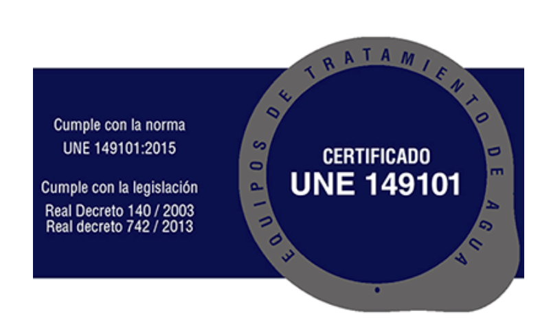 Es decir, la norma UNE 149101 indica como debe ser un equipo de tratamiento de agua para garantizar la calidad del agua ofrecida por dicho producto y cada empresa puede decidir si obtener su certificado o no, pero debe ajustarse a los requerimientos indicados por la normativa de forma obligatoria.