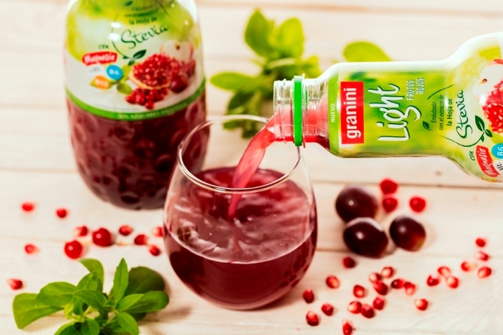 granini Light, la gama de granini endulzada de forma natural con el extracto de la hoja de Stevia, enriquece ahora sus recetas con tres nuevos ingredientes funcionales que ofrecen un plus de beneficios para todas aquellas personas que quieren cuidarse sin renunciar al mejor sabor: el magnesio y las vitaminas B6 y B12. Pero estos ingredientes no son la única novedad que llega a Light. La gama también se amplía con un quinto sabor: granini Light Frutos Rojos, compuesto por arándanos rojos, granada, uva roja y manzana. Una nueva apuesta de granini por el “rojo” que ofrece la mejor combinación de estas frutas, tan ricas en antioxidantes.