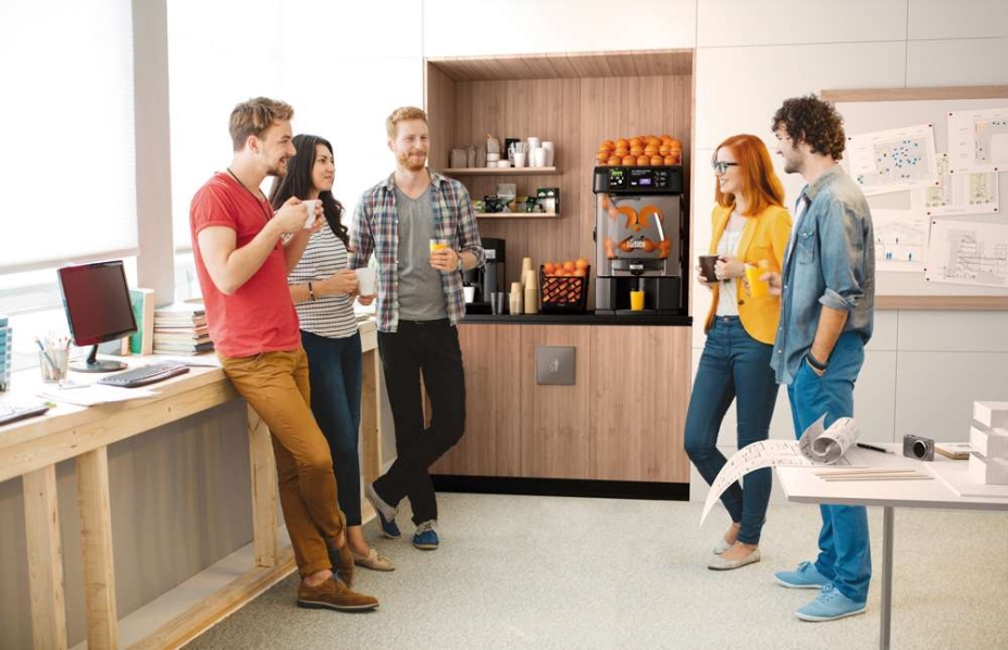HOSTELVENDING.COM 21/11/2019.- Zumex, una de las empresas más importantes en el sector de los zumos exprimidos, ha dado el salto al OCS con su última máquina, la Versatile Pro Cashless, primera exprimidora automática que realizan para el sector office.