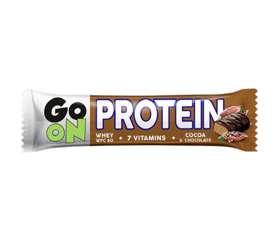 La barra go on protein cacao , cubierta de chocolate amargo, es una deliciosa barra para personas activas, que gana en competencia con dulces comunes. Rico en proteína de suero de leche saludable WPC 80 y enriquecido con vitaminas, aporta importantes nutrientes. Embalajes de 50gr.