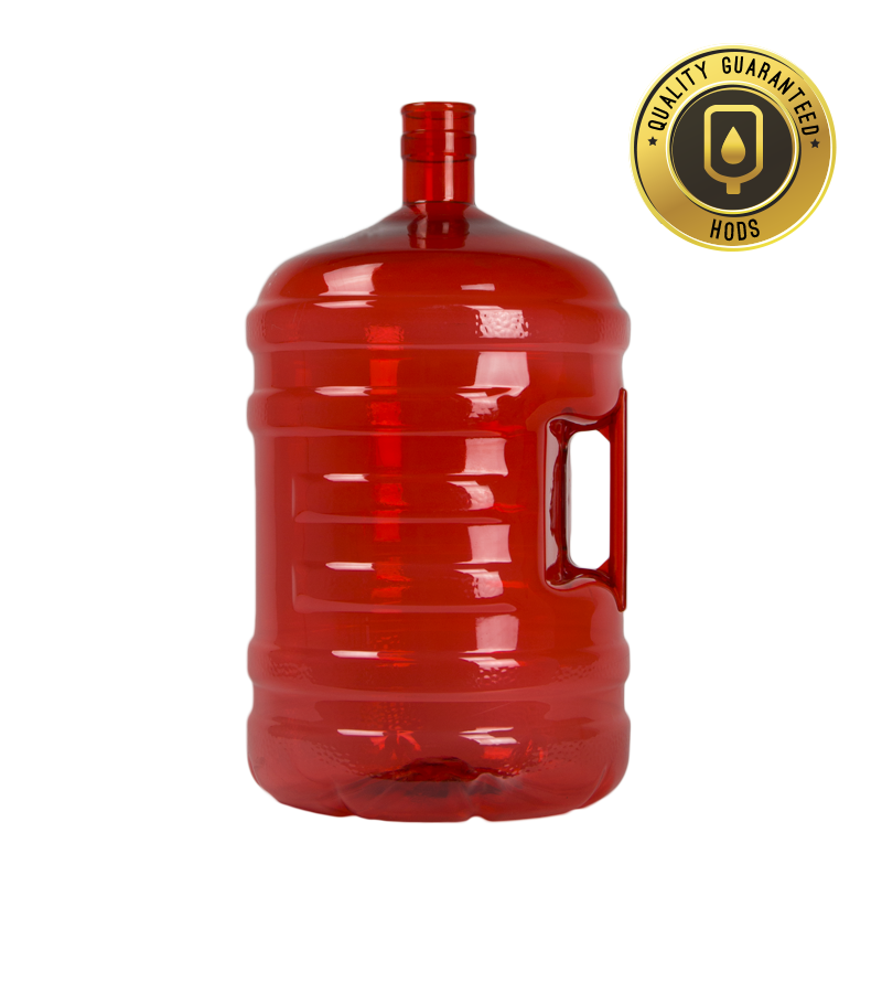 Botellón PET de 18.9 litros Rojo. Fabricado en PET libre de Bisphenol-A. En color rojo, más estético y protector de los rayos solares. Nuestro botellón PET 18.9 litros Rojo es mucho más higiénico al llevar un Asa de ABS insertada al envase. Esta asa externa, permite que el botellón sea lavado y desinfectado por completo. Al contrario que el resto de botellones de Policarbonato, que tienen un asa que forma parte del envase y por la cual no llega a circular el agua en los lavados. De esta forma, eliminamos la posibilidad de que se acumulen bacterias y obtenemos una limpieza total del envase, garantizando la salubridad del agua y de las personas. Nuestros botellones PET, en sus diferentes formatos, tanto de 12 litros, de 18,9 litros como de 20 litros, son totalmente aptos para cualquier dispensador de agua. Además, encajan en nuestras Estanterías metálicas para almacenar hasta 4 botellas y en los Apiladores de 2 botellones. Los botellones están fabricados en nuestras instalaciones en Valencia (España) y cumplen con todas las normativas y garantías de calidad exigidas. Los colores en los que se fabrica aportan protección al agua contra los rayos solares UV. A su vez, ganamos en la estética final del botellón PET, siendo los colores disponibles: Azul, Rojo y Verde Turquesa.